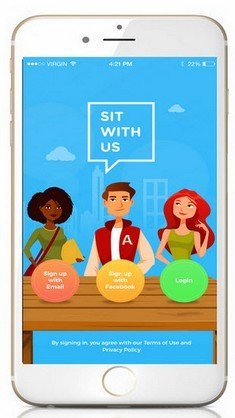 Pour ne plus se trouver dans cette situation et pour aider tous ceux qui sont aussi « mis de côté », Nathalie a créé une application pour smartphone qui permet d’informer ses camarades qu’elle va déjeuner, qu’une place est libre à sa table et d’inviter d’autres personnes à partager le repas. L’application s’appelle Sit With Us. Chaque élève peut créer un « open lunch » pour inviter les autres élèves à se joindre à lui.
