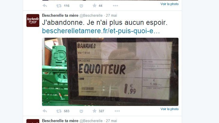Bescherelle ta mère est un site Internet et un compte Twitter qui traquent toutes les fautes d’orthographe et de grammaire qu’on trouve dans la rue, sur les documents officiels, à la télévision et ailleurs. Toujours avec beaucoup d’humour, son créateur, Sylvain Szewczyk, se définit comme un « justicier de l’orthographe ». Un compte à suivre absolument.