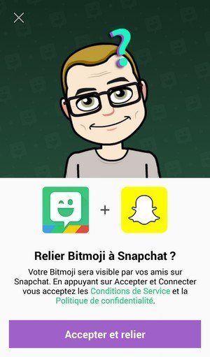7. Quand tu as créé ton avatar, l’application demande à être reliée à Snapchat. Ton Emoji sera alors visible par tes amis sur Snapchat.