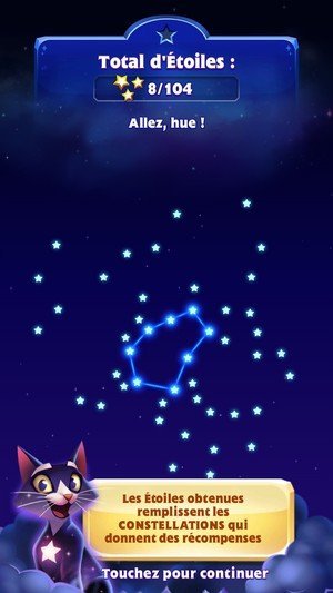 Les premiers niveaux sont vraiment très faciles et le jeu se destine clairement à tous les publics. Le but du jeu est de gagner des étoiles pour éclairer la voûte céleste et de terminer des Constellations pour débloquer des pouvoirs spéciaux. A toi de jouer !