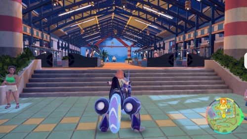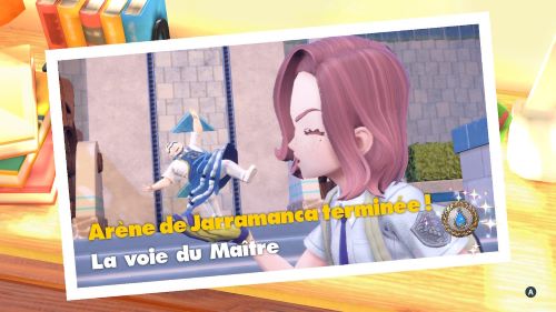 Pour te rendre à la troisième arène, va dans l’Ouest de Paldea, dans la ville de Jarramanca et rends-toi devant le grand bâtiment qui ressemble à un building au sommet de la ville (c’est l’arène). Ici une cinématique se lancera, et tu devras aller rendre un objet au champion de l’arène. Tu dois donc aller le retrouver. Il se trouve à Porto Marinada, la ville juste à l’Ouest de Jarramanca (juste après le désert).