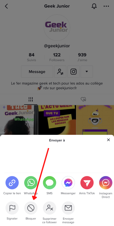 Comme sur tout réseau social, cela peut nous arriver de vouloir bloquer une personne. Aujourd’hui, Geek Junior va te montrer comment bloquer un compte indésirable facilement et rapidement. Bloquer un utilisateur, permet de l’empêcher de regarder tes vidéos, de t’envoyer des messages, de te laisser des commentaires, de s’abonner à toi, ou même de liker ton contenu. Pour faire simple, cette personne ne pourra plus interagir avec toi, de quelque manière que ce soit.