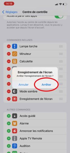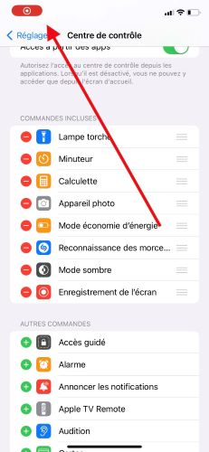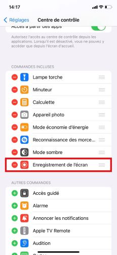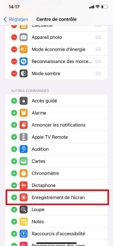 Puis, dans “Centre de contrôle”, cherche dans la partie “Autres commandes” : “Enregistrement de l’écran”.