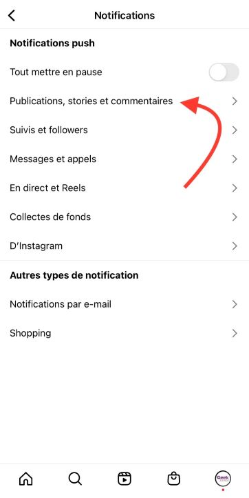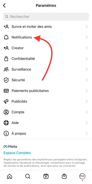 Gérer notifications Instagram