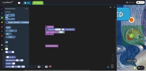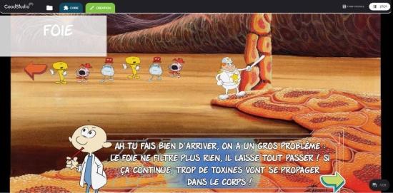 Dans « Il était une fois… Le code » , le but est de soigner Roméo qui ne se sent pas bien. Tu vas choisir d’incarner Psi ou Pierrot, deux des fidèles compagnons d’aventure de Maestro. Puis, dans l’intestin, le foie, la gorge ou le tibia, tu devras remplir des missions et résoudre des énigmes en codant, identifier les lettres du code secret et pour soigner Roméo. Par exemple, tu vas reprogrammer le foie pour qu’il filtre correctement les composants toxiques pour le sang. En appliquant les notions de mathématiques du programme scolaire (conditions, boucles, variables) et en choisissant les bons blocs de code, le foie pourra ainsi laisser passer les lipides et bloquer le sel.