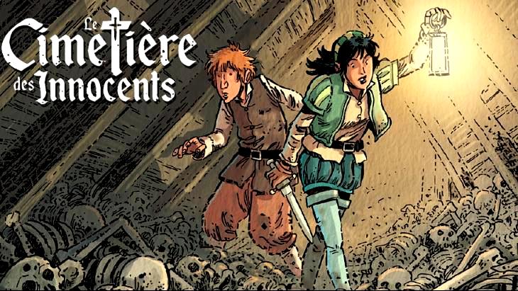 Publié chez Bamboo / Grand Angle, Le Cimetière des innocents est une histoire en deux tomes. En pleine guerre de religions, l’histoire tourne autour d’un lieu emblématique de cette époque, le cimetière des Innoncents où sont enterrés d’une manière un peu anarchique les parisiens les moins riches. Là, un jeune protestant, Jonas, tout juste arrivé dans la capitale, fait la rencontre de la très libre Oriane, fille d’un alchimiste.
