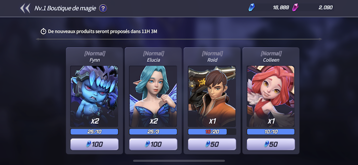 Les invocations mystiques s’obtiennent en récompense ou se font avec des cristaux. Tu pourras y invoquer des monstres, des sorts et des pierres de compétences. Le grade des cartes obtenues ici sont entre normal et légendaire.