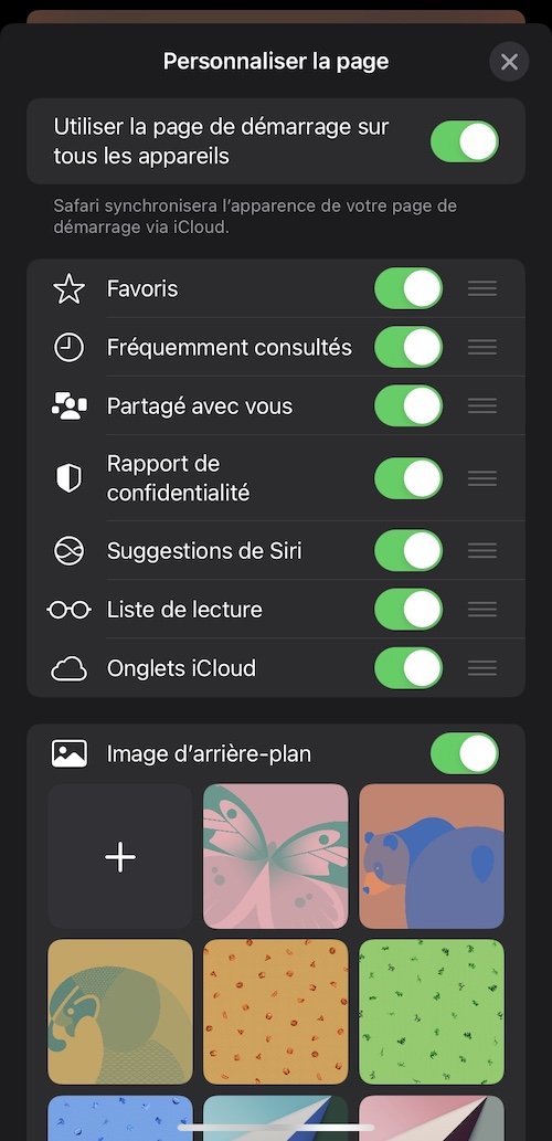 - La page de démarrage est personnalisable selon tes envies, arrière-fonds, sections, favoris…