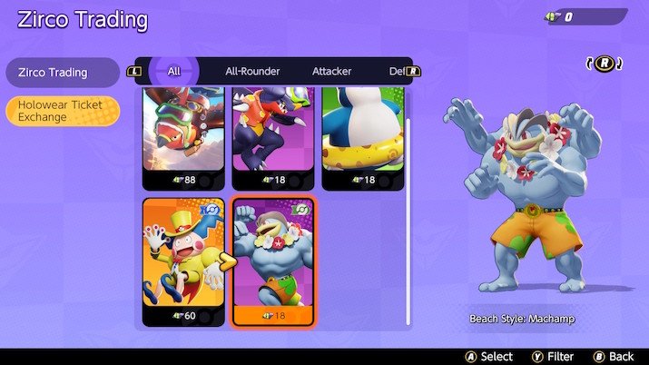 Dans le magasin, tu peux effectuer trois types d’achats : des Pokémon, des habits et des skins pour tes Pokémon. La monnaie est constituée de pièces, de tiques et de gemmes.
