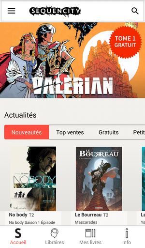 Déjà Sequencity revendique 16 000 titres dont les séries les plus connues (Blake et Mortimer, Largo Winch, XIII, Les Schtroumpfs, Titeuf, Lucky Luke, Dragon Ball, Naruto, Walking Dead, Spider-Man, Deadpool…). Chaque semaine, une cinquantaine de nouveaux titres est intégrée ainsi que des promos et des BD gratuites. En ce moment, tu peux lire ainsi sans débourser un centime le premier tome de Valérian, « La Cité des eaux mouvantes« .