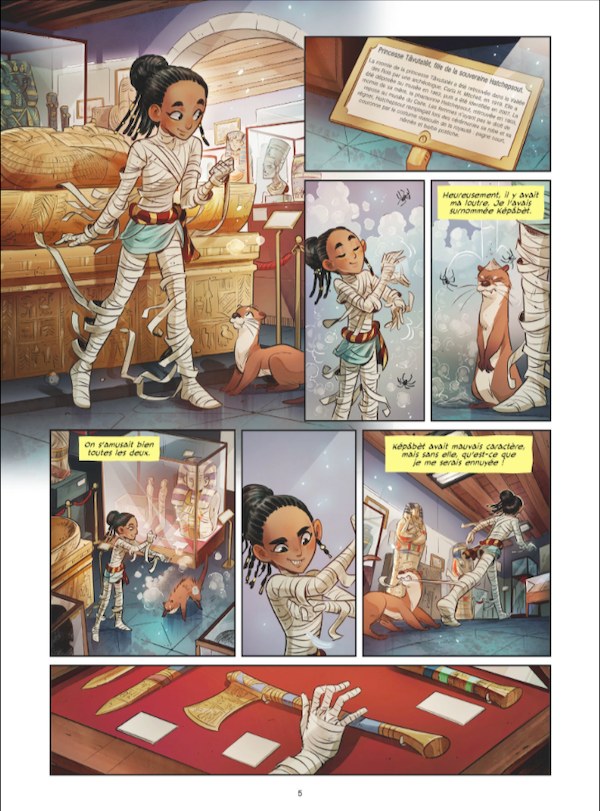 Tavutatèt, l’héroïne de cette aventure en 2 tomes, s’ennuie depuis que plus personne ne vient la voir au musée. Elle rêve de partir à l’aventure avec sa meilleure amie loutre « Képabet ». Mais malheureusement sa mère, une célèbre pharaonne, lui a interdit de mettre les pieds dehors. Le monde extérieur est dangereux, personne ne doit savoir qu’elles sont vivantes.