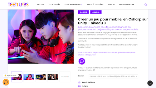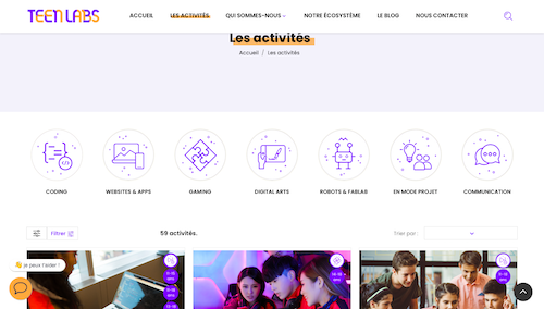 - Une plateforme facile à utiliser : on rentre notre âge, nos centres d’intérêt, notre lieu de résidence. Et TeenLabs affiche les activités correspondantes ! Bonus : on peut le faire sans s’inscrire !