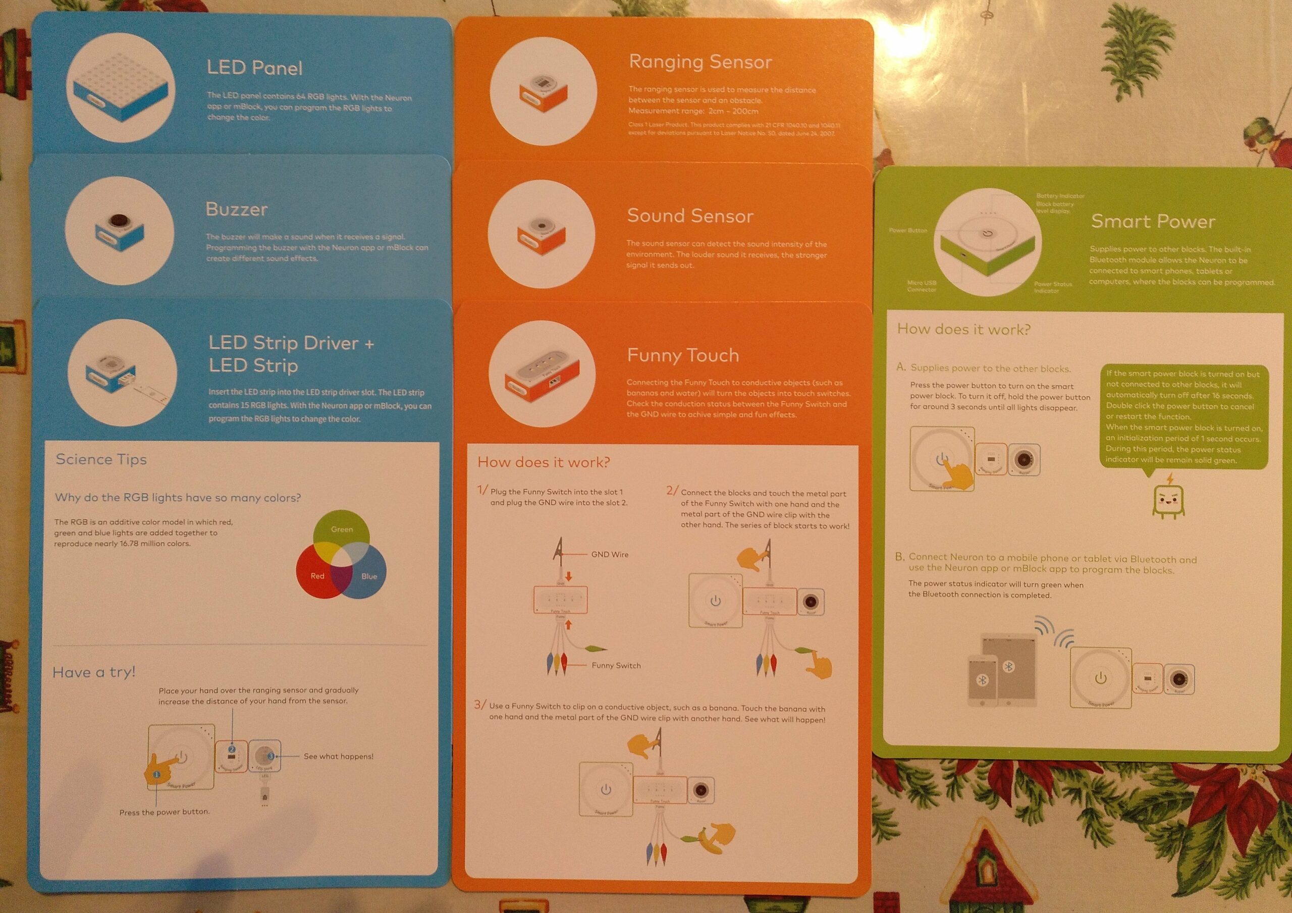À l’ouverture du coffret, on remarque un plateau contenant les modules programmables et autres accessoires ainsi qu’une petite enveloppe dans lequel se trouve le mode d’emploi de base ainsi que des cartes « ressources » de programmation.
