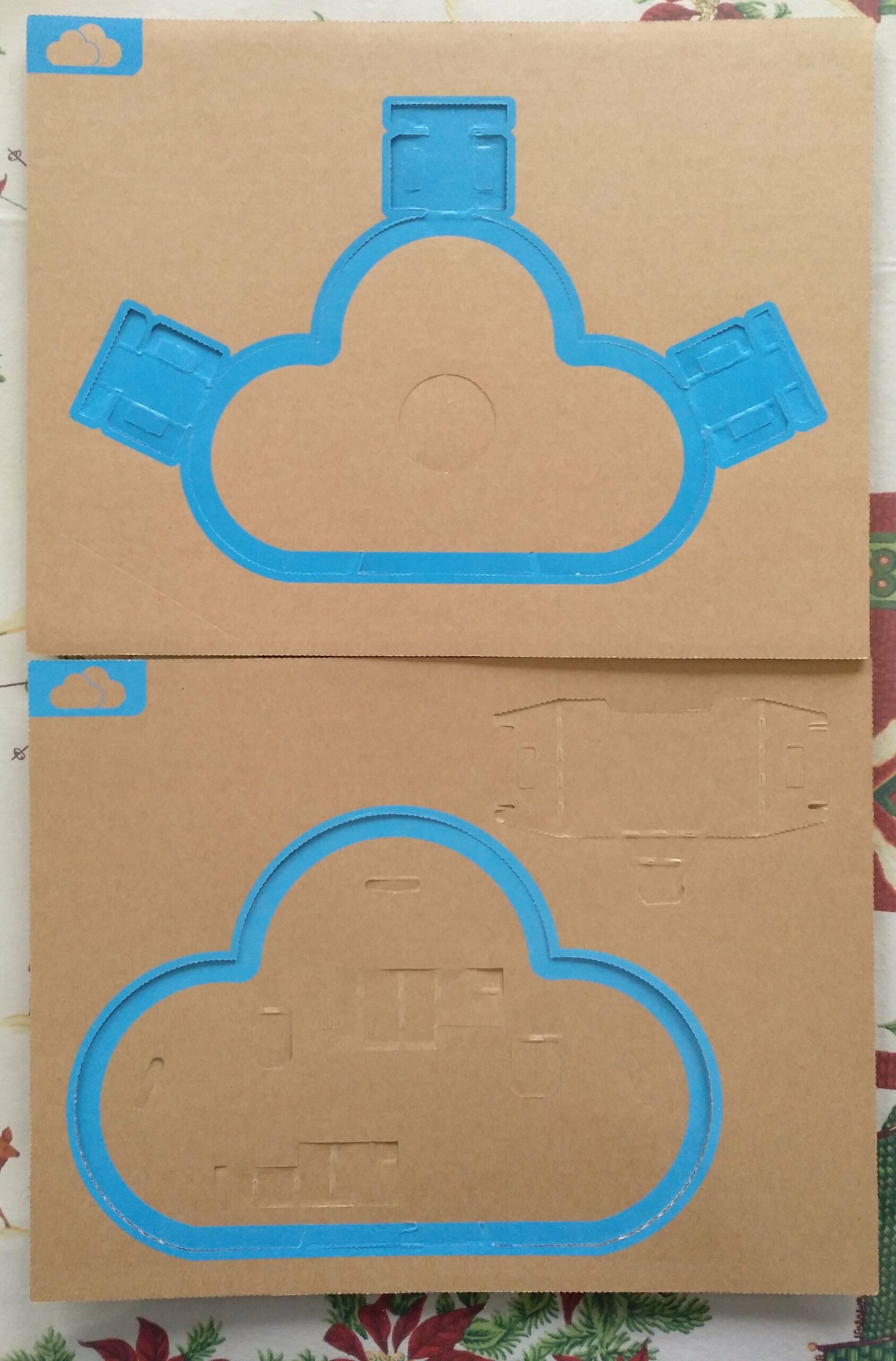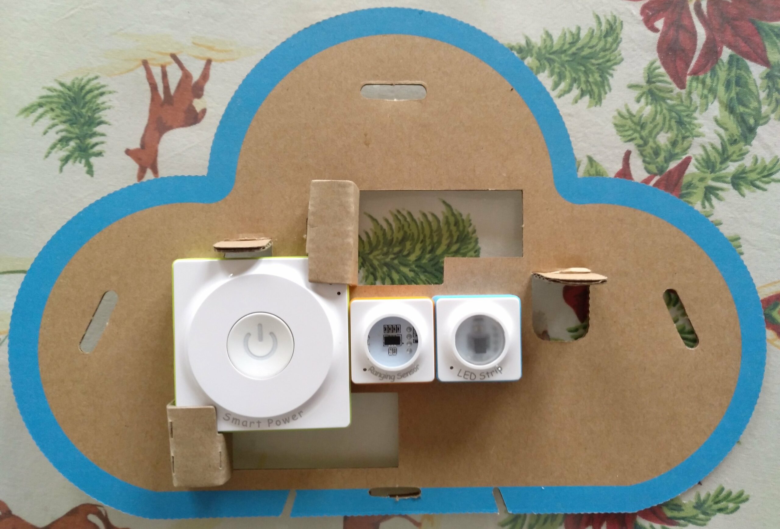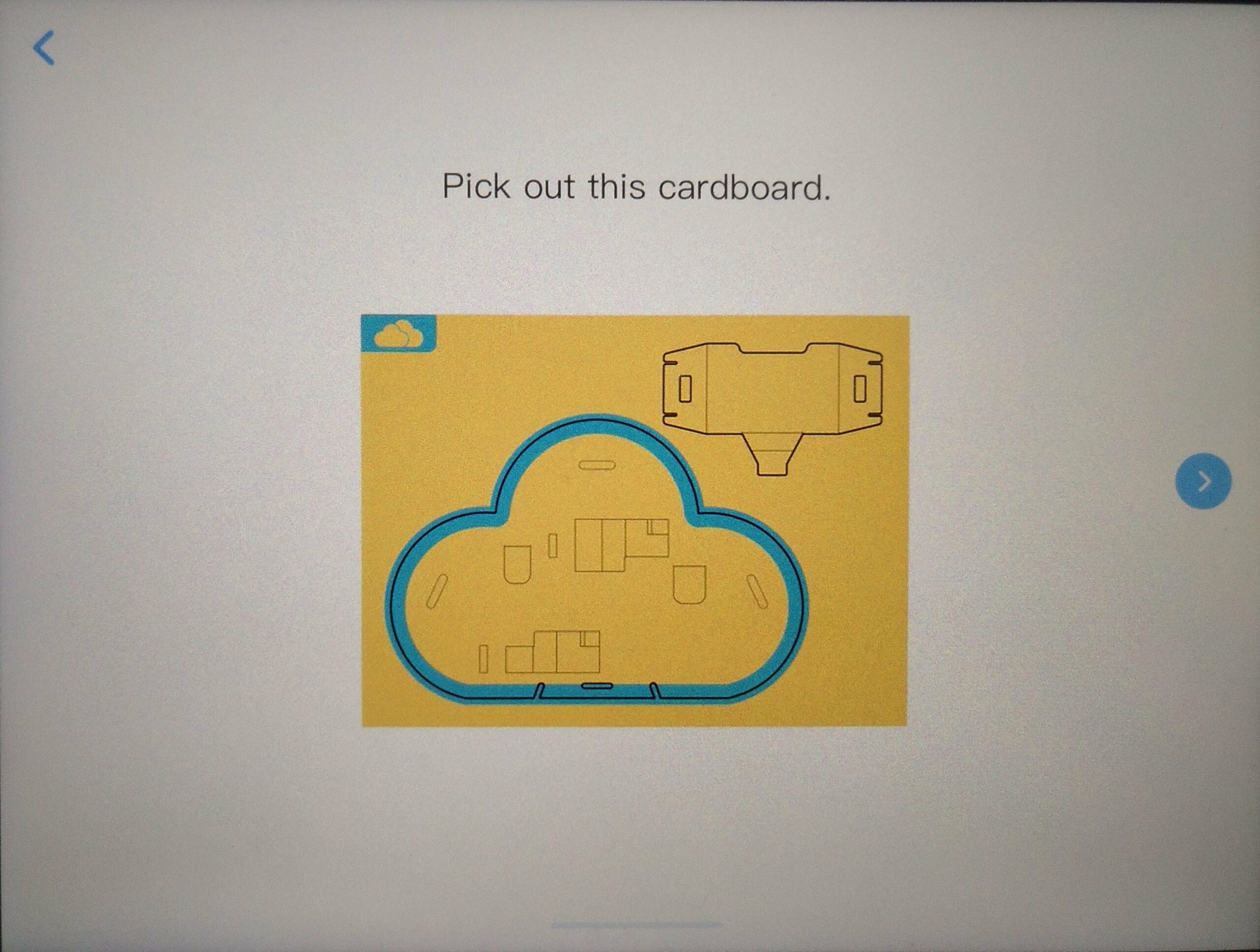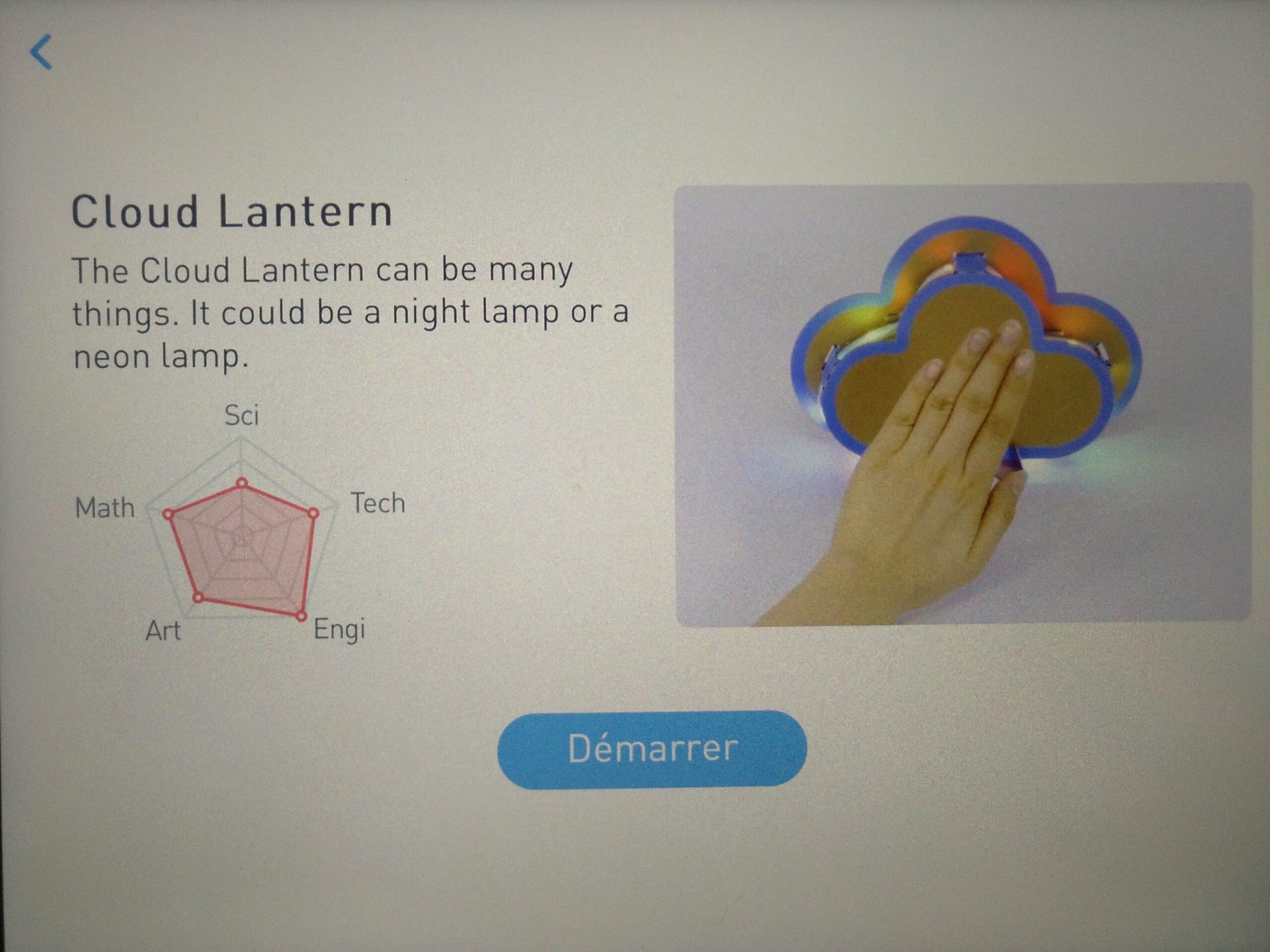 J’ai choisi de réaliser le projet “Cloud Lantern”. Il faut bien sûr sortir les éléments du kit carton mais aussi, avoir installé l’application mobile « Neuron » sur sa tablette.