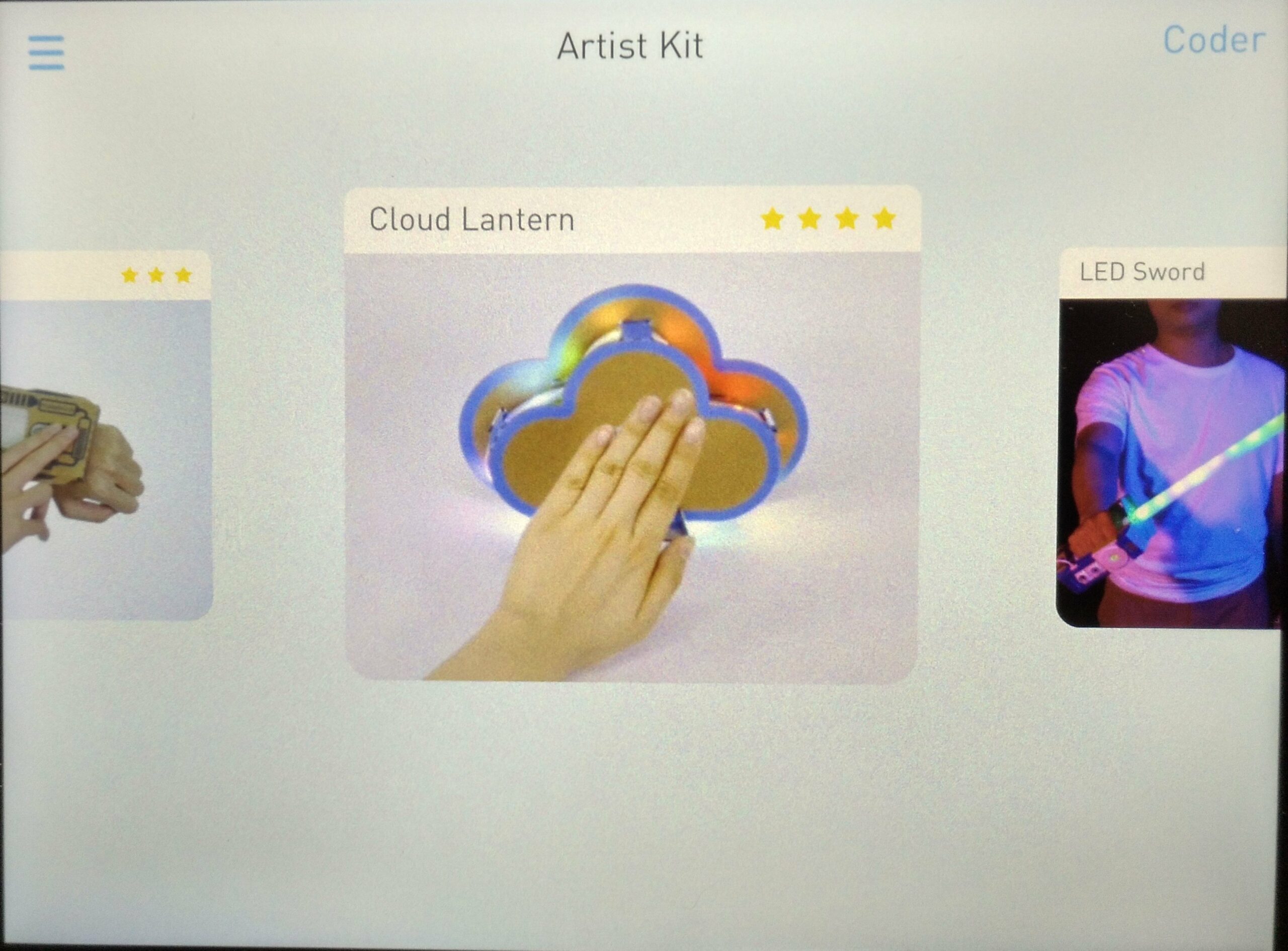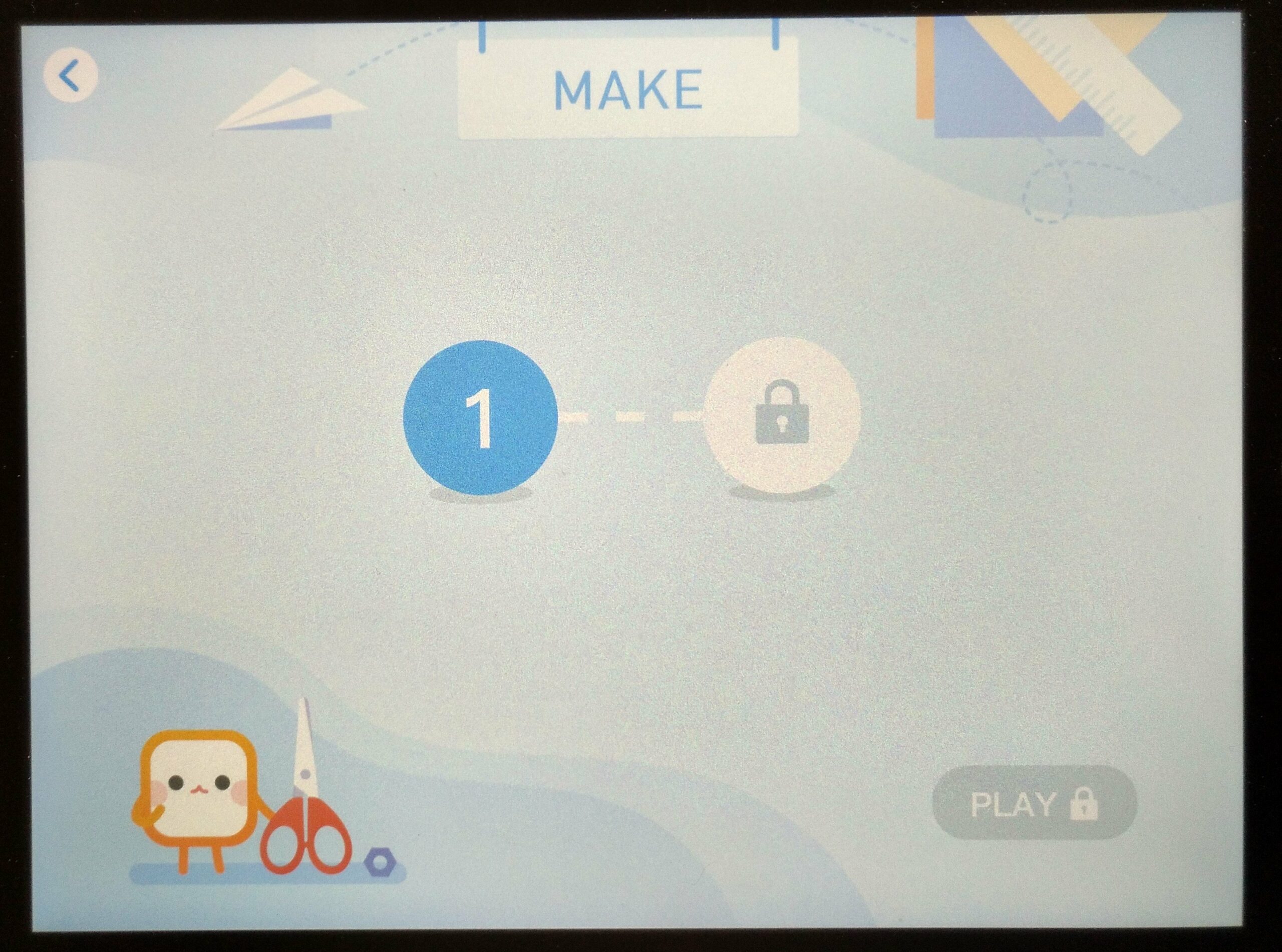 Bien caché sous le plateau supérieur, on découvre un petit emballage contenant les kits en carton qui permettent de réaliser les 6 différents projets : Xylophone, Magical Drum, Ukulele, Infinity Band, Cloud lantern et LED sword.