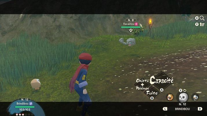 Dorénavant, dans Légendes Pokémon : Arceus, pour attraper un Pokémon il te faudra être précis. À la Pokémon Go, lorsque tu croiseras un Pokémon que tu souhaites attraper, tu lui lanceras une Poké Ball directement dessus. Fais attention de viser correctement et assure-toi d’avoir le niveau pour l’attraper, sans avoir à le combattre avant pour l’affaiblir.